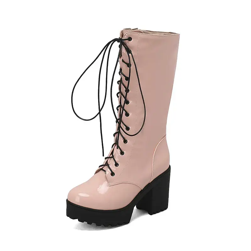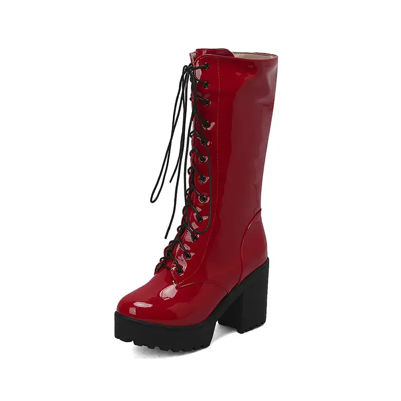These stylish platform boots combine a classic Martin boot design with a trendy platform sole. The lace-up closure ensures a secure and adjustable fit, while the mid-calf height provides both coverage and versatility.