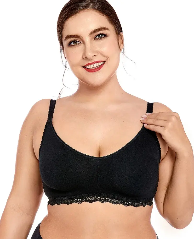 Lace Wirefree Full Coverage Cotton Bra Plus Size Comfort Breathable