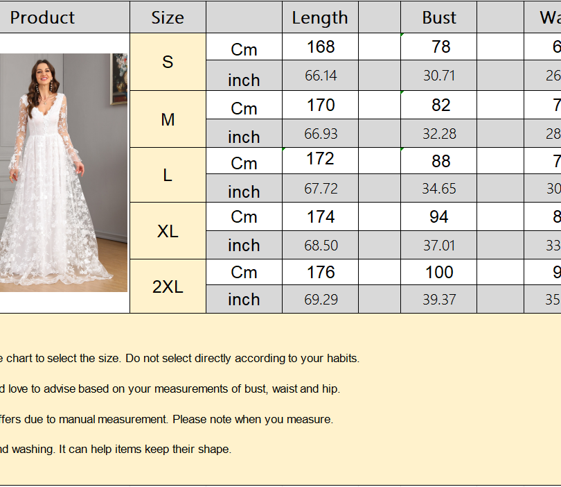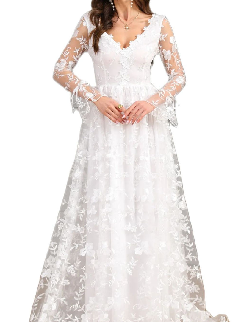 Lace Backless V-Neck A-Line Full Sleeve Floor Length Wedding Dress Bridal Gown
