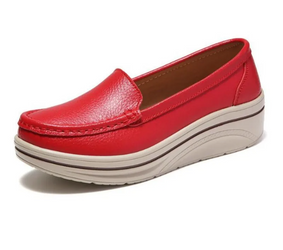 These round-toe loafers effortlessly elevate any outfit with their chic and practical design. Featuring a comfortable platform and a wearable wedge heel, these shoes seamlessly blend style and comfort.