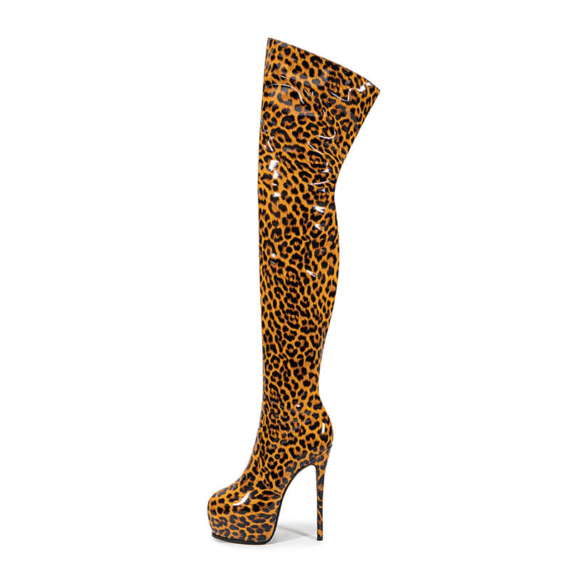 Tags: leopard print over the knee platform boots, women's thin high heel thigh high boots, sexy animal print platform boots for sale, patent leather over the knee boots with side zip, winter statement boots with super high heel, round toe leopard print boots women, waterproof over the knee high heel boots, platform boots for women night out, leopard thigh high boots with thin heel, side zipper platform boots animal print, modern over the knee boots for winter, where to buy sexy leopard print boots, high heel patent leather boots round toe