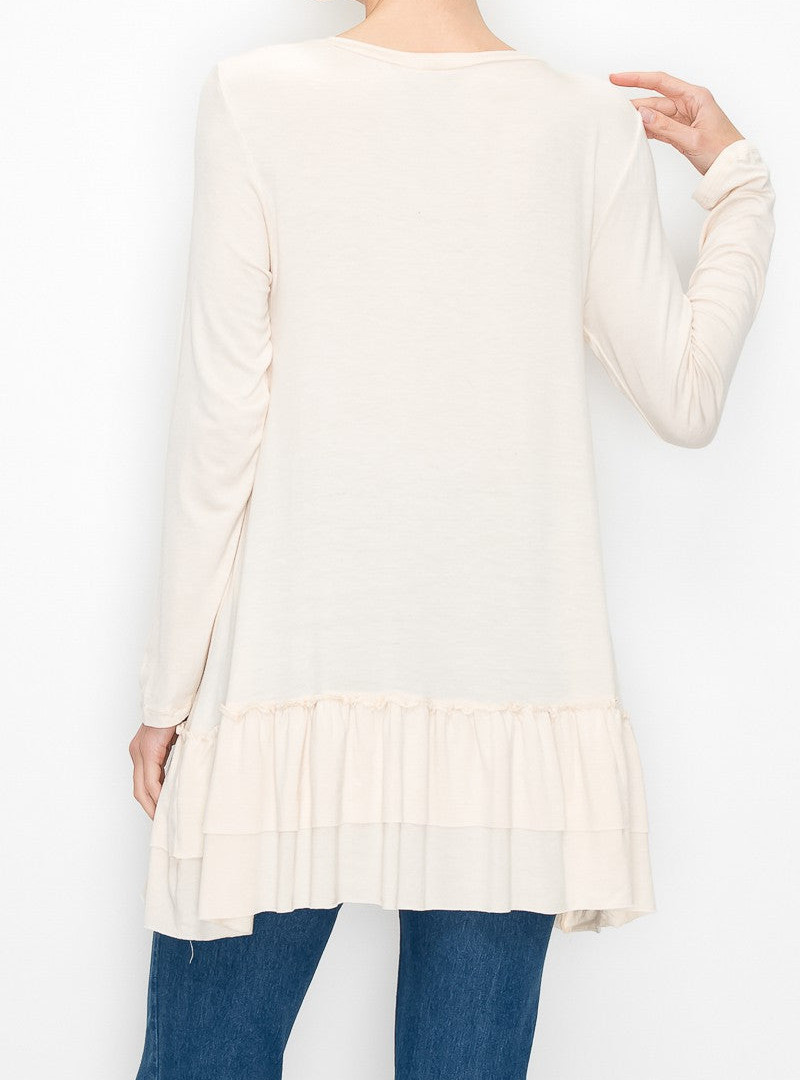 Long Sleeve Pleated Bottom Tunic - Ivory