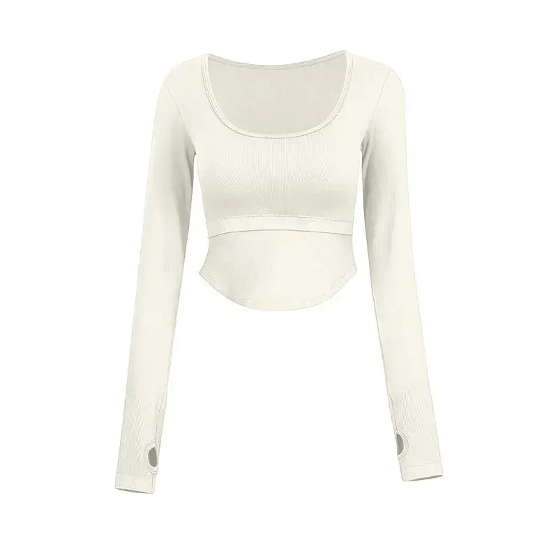 Long Sleeve Yoga Top With Chest Pad Workout Tops Athletic Gym Shirts