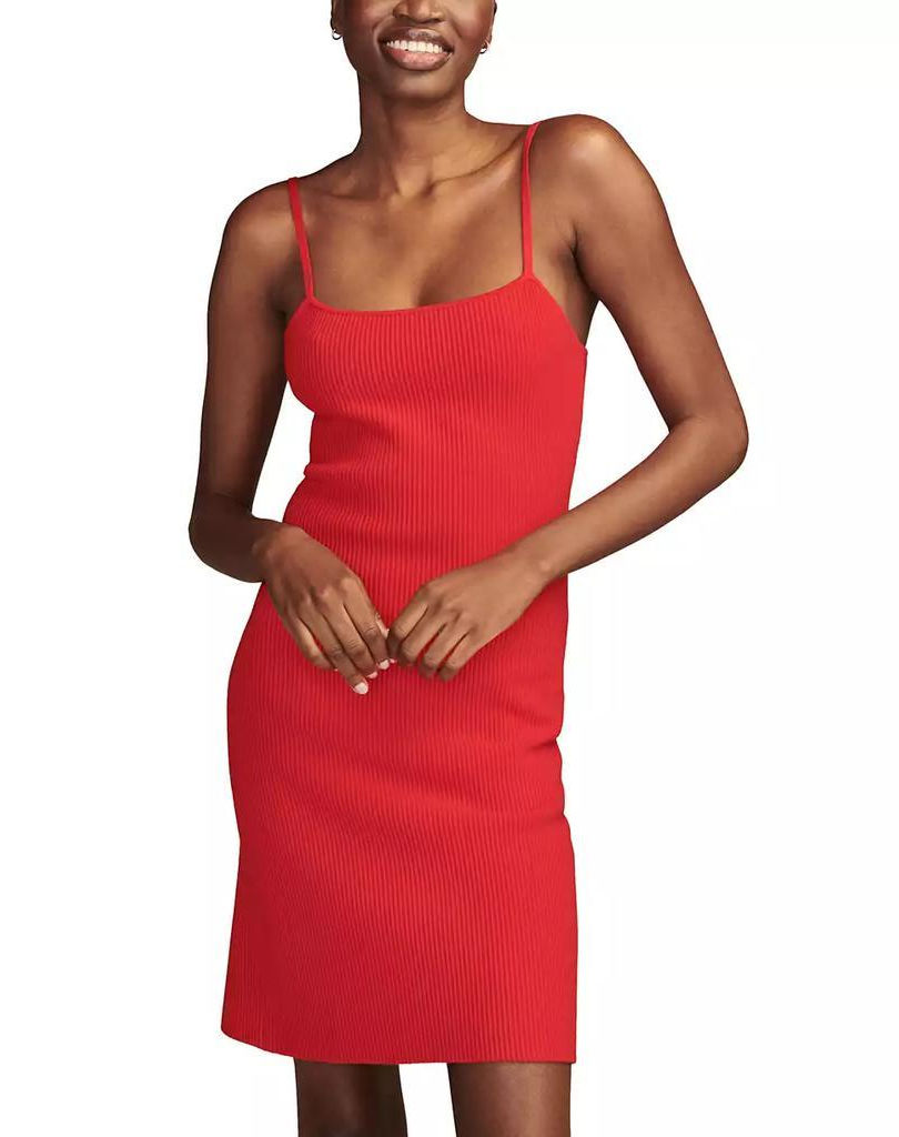 Polyester Rib-Knit Three Quarter Sleeve Mini Dress Above Knee Knit