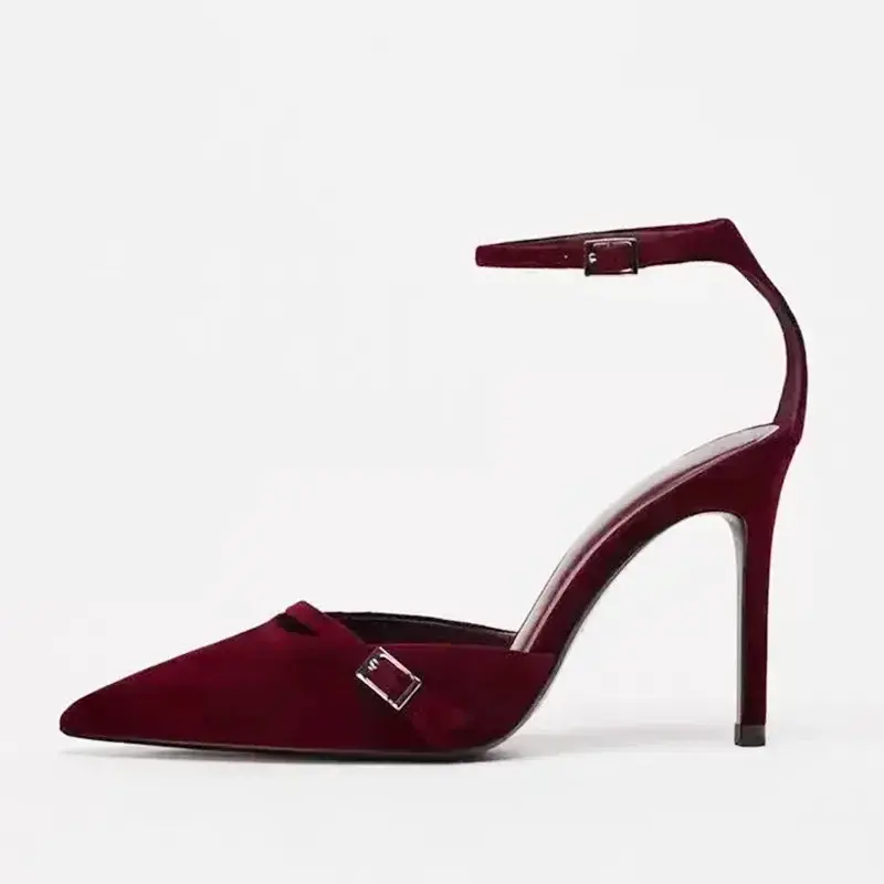 Tags:burgundy velvet pointed toe pumps, women's high heel ankle strap sandals, deep red velvet heels for wedding guest, maroon pointed toe heels with ankle strap, sexy burgundy slingback pumps high heel, elegant velvet party shoes for women, burgundy stiletto heels with buckle strap, wine colored heels for formal event, pointed toe ankle buckle pumps, burgundy suede ankle strap pumps, closed toe burgundy heels with strap, high heel velvet pumps for evening wear, women's burgundy dress shoes with thin heel, fall wedding guest shoes for women