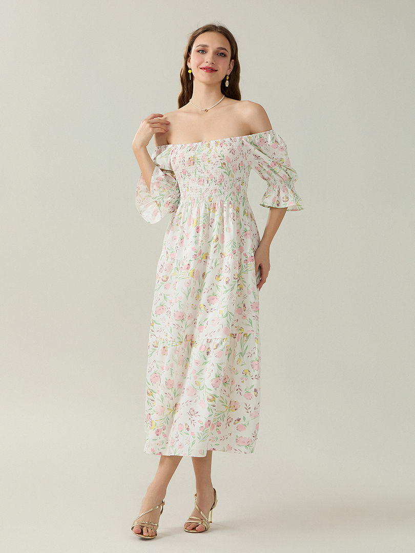 Solid Velvet Slash Neck Full Sleeve Mid-Calf Pullover Dress Diamond Trim