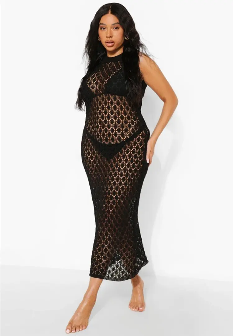 Mesh Crochet Beach Cover Up Dress - Long Sheer See Through