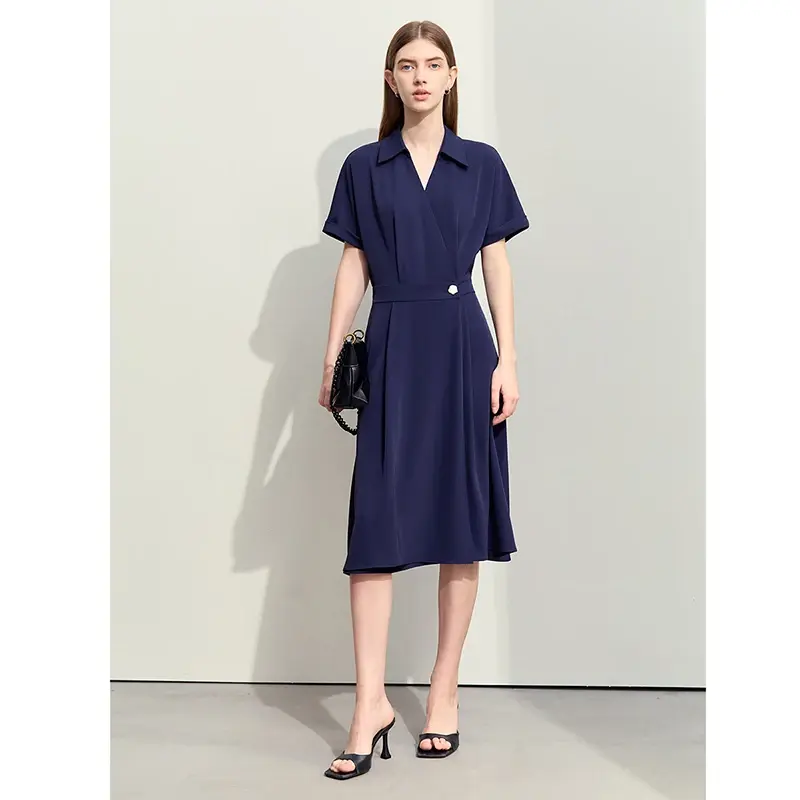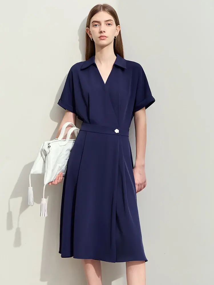 Minimalist Lapel Sleeve Dress Summer Fashion Morandi Color