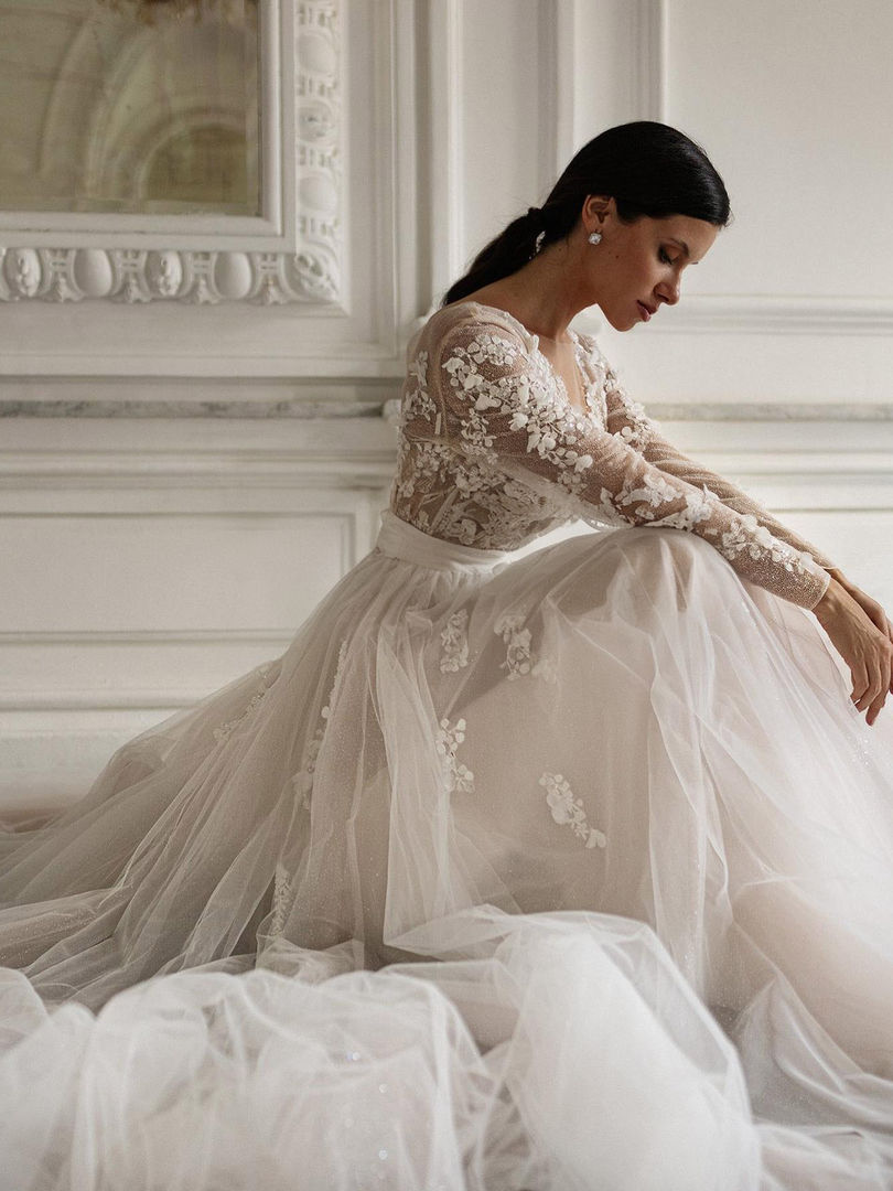 - Sparkling jewelry to highlight the sweetheart neckline.