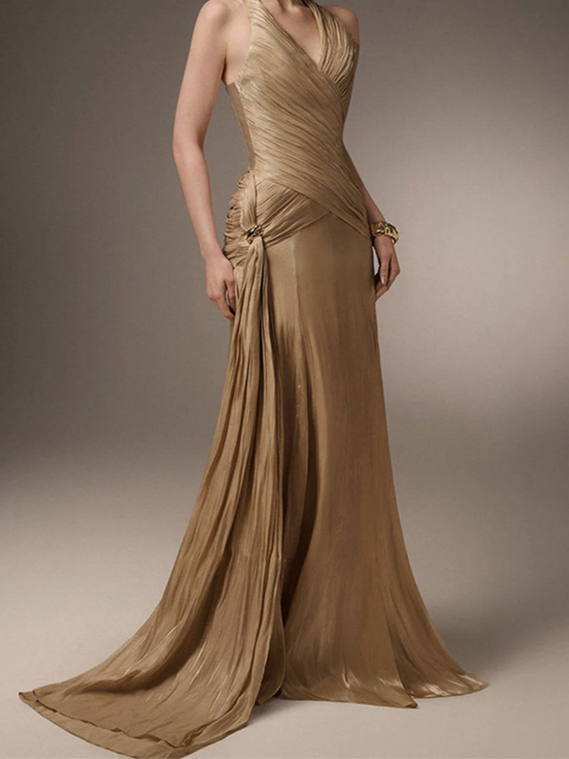 Tags:formal halter neck maxi dress, sleeveless backless evening gown, slim fit floor length wedding guest dress, empire waist formal gown with v-neck, solid color sheath silhouette prom dress, elegant backless halter dress for events, women's long formal dress with folded detail, red carpet style halter neck gown, black tie event floor length dress, v-neck backless maxi dress formal, women's empire waist sleeveless gown, celebrity style floor length halter dress, long formal halter top dress