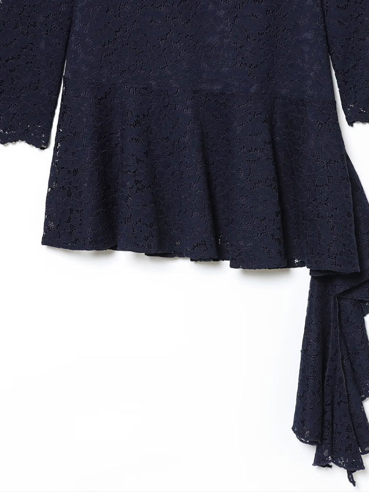 Tags: long sleeve lace mini dress autumn, asymmetrical hem A-line dress, casual lace dress for women, elegant O-neck dress with long sleeves, autumn cocktail dress above the knee, women's solid color lace trim dress, A-line mini dress for fall season, regular fit long sleeve dress, polyester lace dress for women, what to wear for an autumn party, asymmetrical lace dress casual, elegant yet casual fall dress, O-neck long sleeve mini dress, women's A-line dress with lace detail