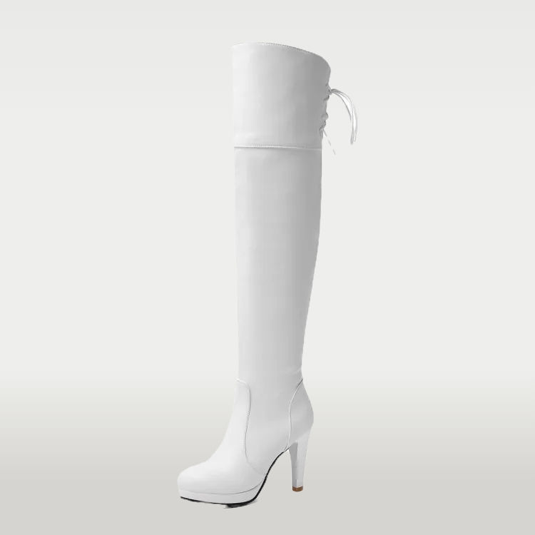 Nude Lace-Up Heels Round Toe High Heel Shoes