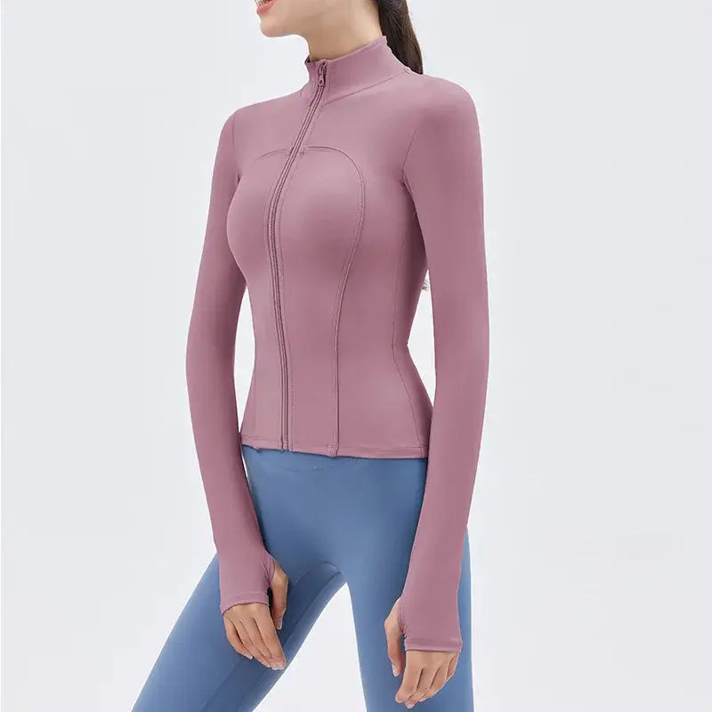Nude Yoga Jacket Stand Collar Zipper Athletic Shirt Gym Running Fitness