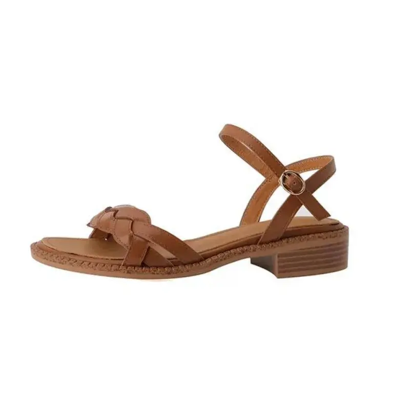 Open Toe Low Heel Sandals | Braided Line Button Beach Flat Soft