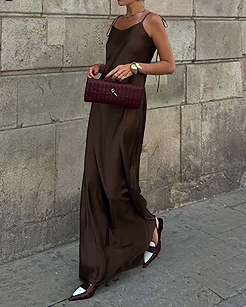 Tags: brown backless maxi dress for wedding guest, chocolate brown spaghetti strap evening dress, long brown formal dress with open back, slim fit floor length brown dress, elegant v-neck sleeveless maxi dress, autumn formal event dress brown, straight cut brown evening gown, minimalist brown slip maxi dress, women's brown floor-length party dress, spaghetti strap open back long dress, dark brown formal gown sleeveless, simple elegant brown long dress, brown cocktail dress long, what to wear to an autumn wedding guest