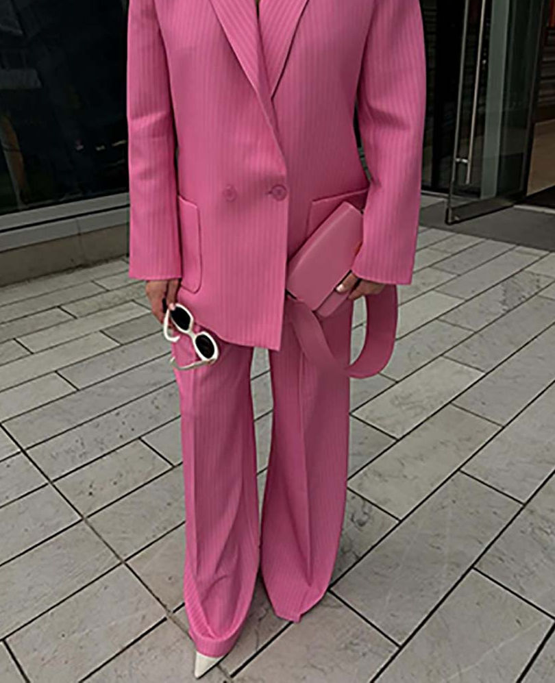 Tags: women's pink two piece pant set, pink blazer and matching pants set, elegant pant suit for women formal, double breasted blazer and pants set women, women's business casual two piece outfit, long sleeve pink suit for women, matching blazer and trousers set pink, women's solid color two piece suit, autumn fashion women's pant suit, two piece set with pockets for women, elastic waist professional pants set, women's pink power suit for work, regular fit two piece suit women, turn down collar blazer and pant set