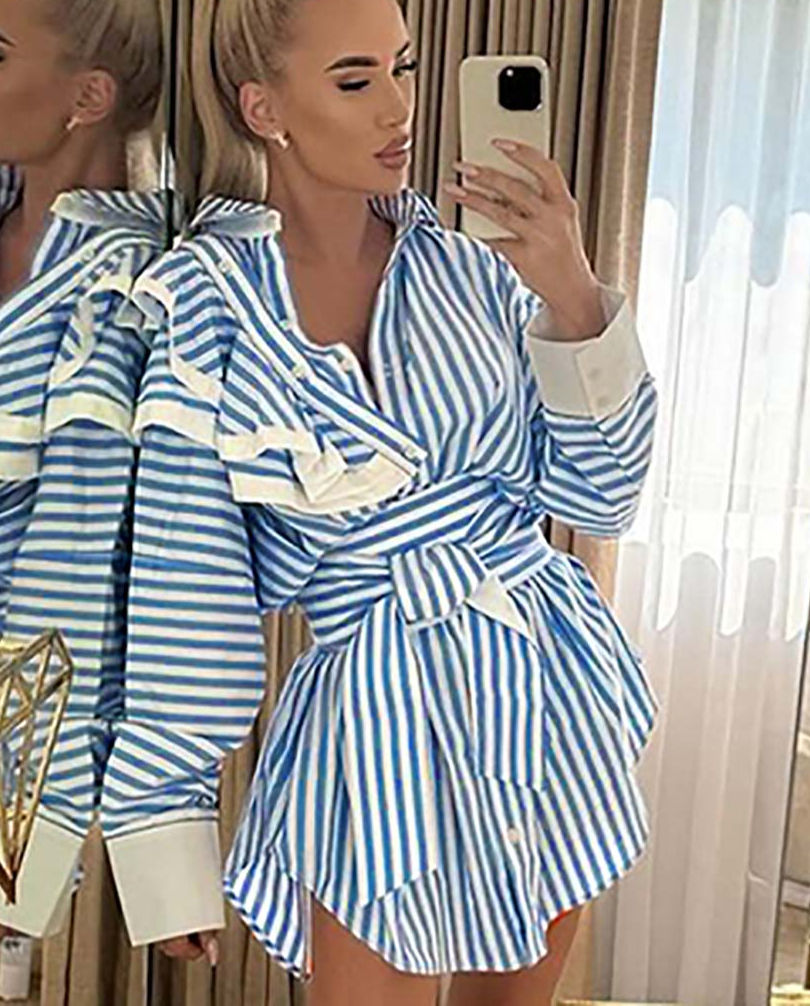 Tags: blue print long sleeve shirt dress, asymmetrical mini shirt dress for women, casual button down dress with collar, women's blue patchwork print dress, loose fit long sleeve mini dress, empire waist casual dress, streetwear style printed dress, autumn fashion blue print dress 2024, single breasted collared mini dress, above the knee blue print dress, elegant lapel long sleeve dress, high waist asymmetrical hem dress, women's fashion print dress new arrival, blue and white print button up dress