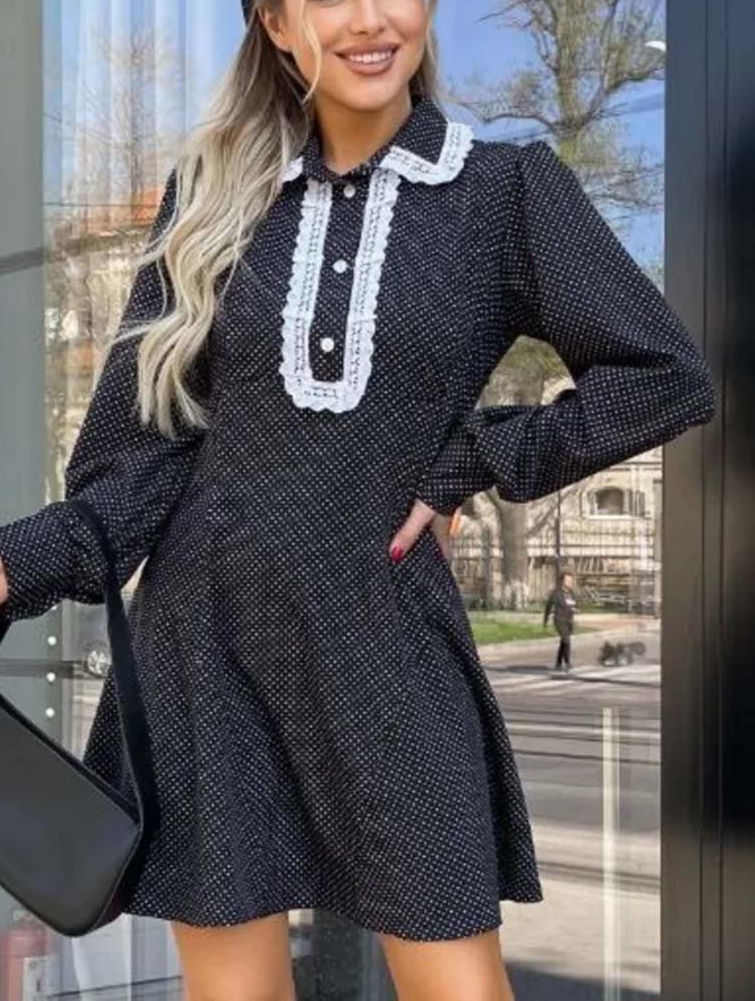 Red Print Mini Dress, Long Sleeve Casual Dress, Peter Pan Collar, Button Down