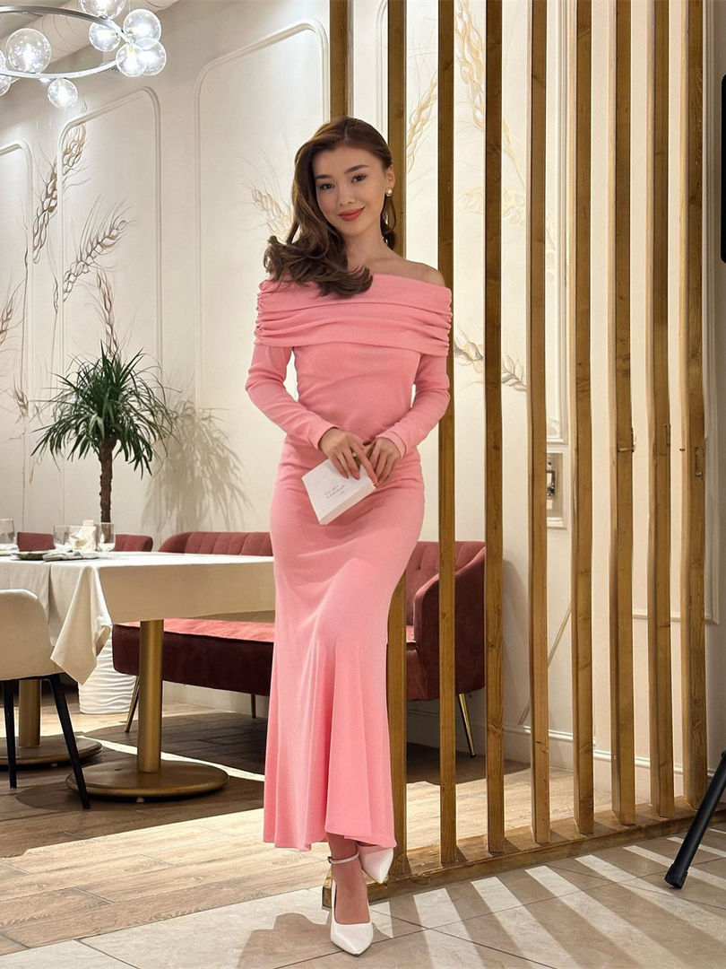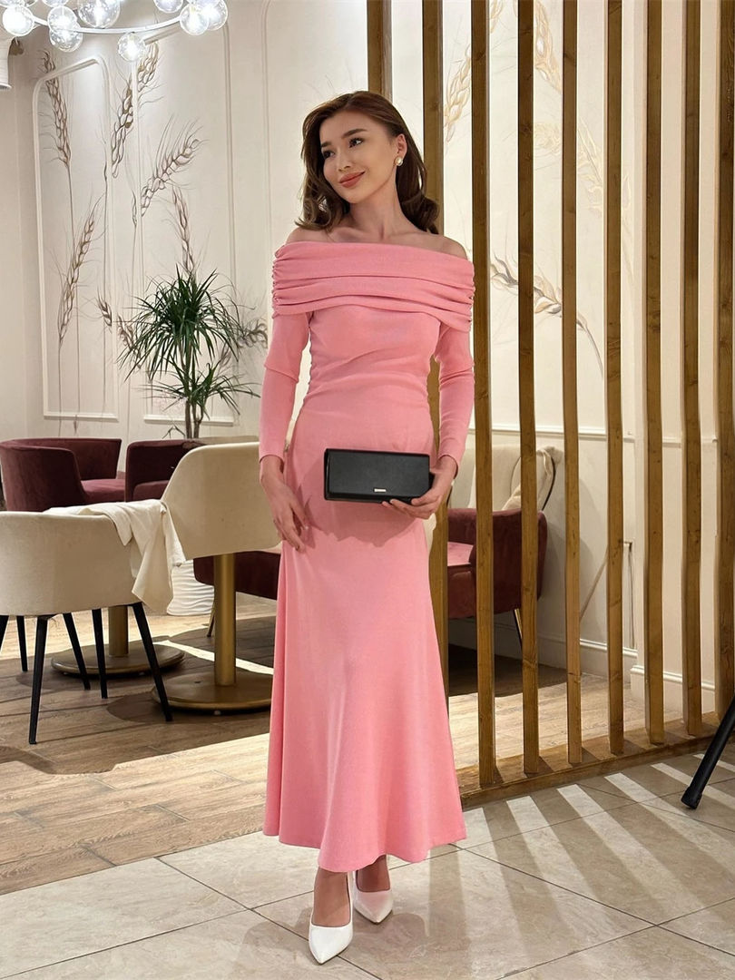 Tags:pink off the shoulder evening dress, long sleeve prom dress ankle length, boat neck formal gown, straight silhouette evening dress, pleated evening gown, modern style prom dress, full sleeve evening dress, non-spot evening dress, all age evening dress, polyester jersey evening dress, simple fashion element dress, evening dress for prom, where to buy pink evening gown, affordable pink prom dress, long sleeve formal dress for women.