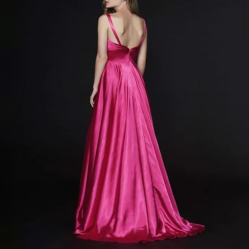 Tags:Pink satin V-neck prom dress, sleeveless formal dress with slit, cut-out bridesmaid dress, floor-length satin evening gown, V-neck A-line spaghetti strap dress, adult bridesmaid dresses, all age formal gown, boho style prom dress, satin ball gown dress, sleeveless V-neck prom dress, high slit evening dress, built-in bra formal dress, pink bridesmaid dress long, plus size satin prom dress.