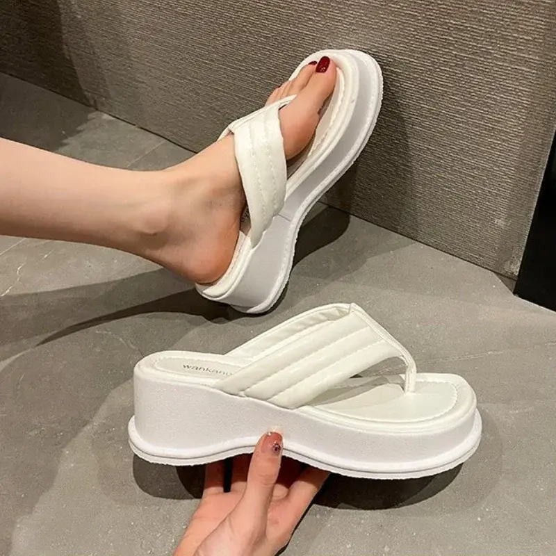 Platform Flip-Flops Clip-On Toe Slides Square Open Toe Sandal Shoes 2023 New