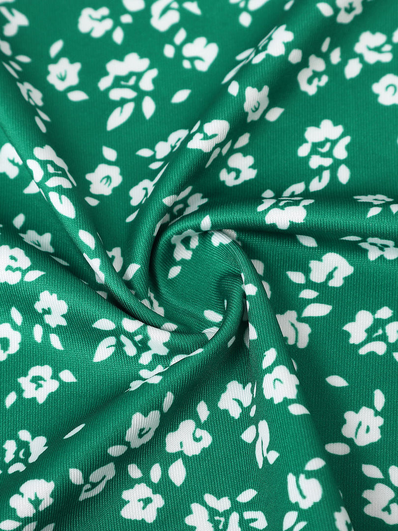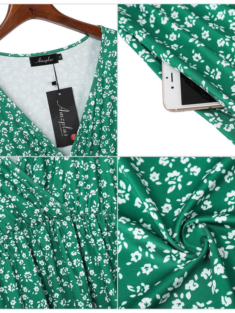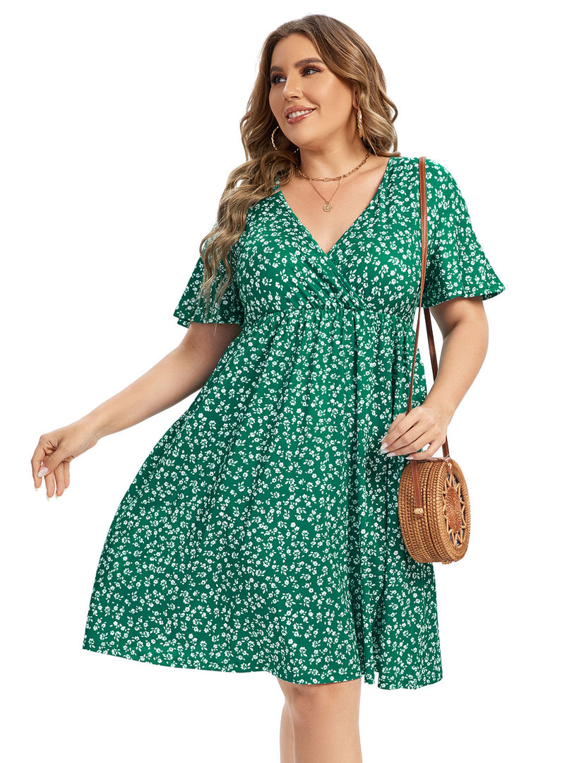 Plus Size Dress V-Neck A-Line Knee Length Wrap Swing Print Butterfly Sleeve Faux