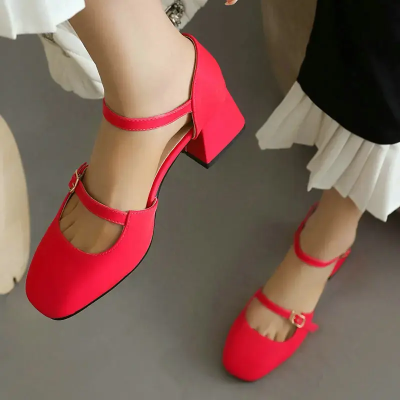 Plus Size Mary Janes Shoes Closed Toe Bright Pink Green Color