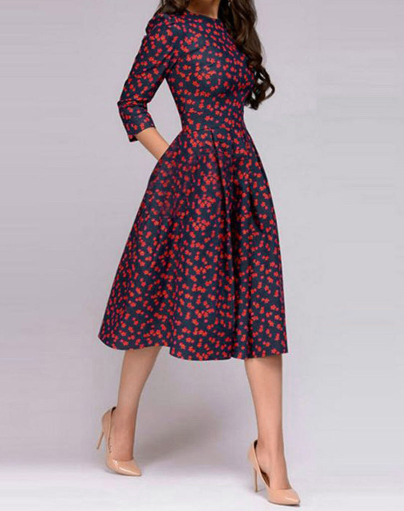 Casual Sleeveless Knee-Length Dress O-Neck Single Breasted High Stretch Polyeste