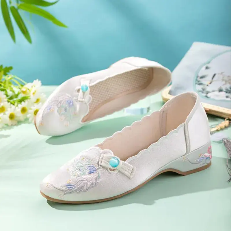 These elegant loafers effortlessly combine style and comfort, making them a perfect choice for the modern woman's wardrobe. The pointed toe and low heel create a flattering silhouette, while the intricate embroidery adds a touch of sophistication.