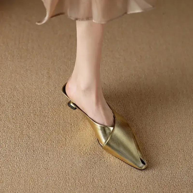 Pointed Toe Half Slippers Open Toe Outdoor High Heels Slip On Shoes