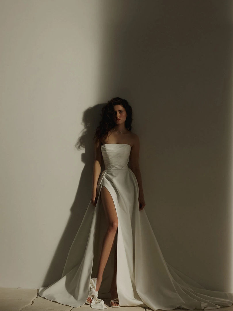Tags: A-line strapless wedding dress, pleated wedding gown, boho wedding dress with slit, vintage inspired bridal gown, organza and tulle wedding dress, plus size A-line wedding dress, affordable strapless wedding dress, beach wedding dress with train, simple elegant wedding dress, strapless bridal gown with zipper back, pregnant bride wedding dress, custom made wedding dress online, long A-line wedding dress, sweep brush train wedding dress.
