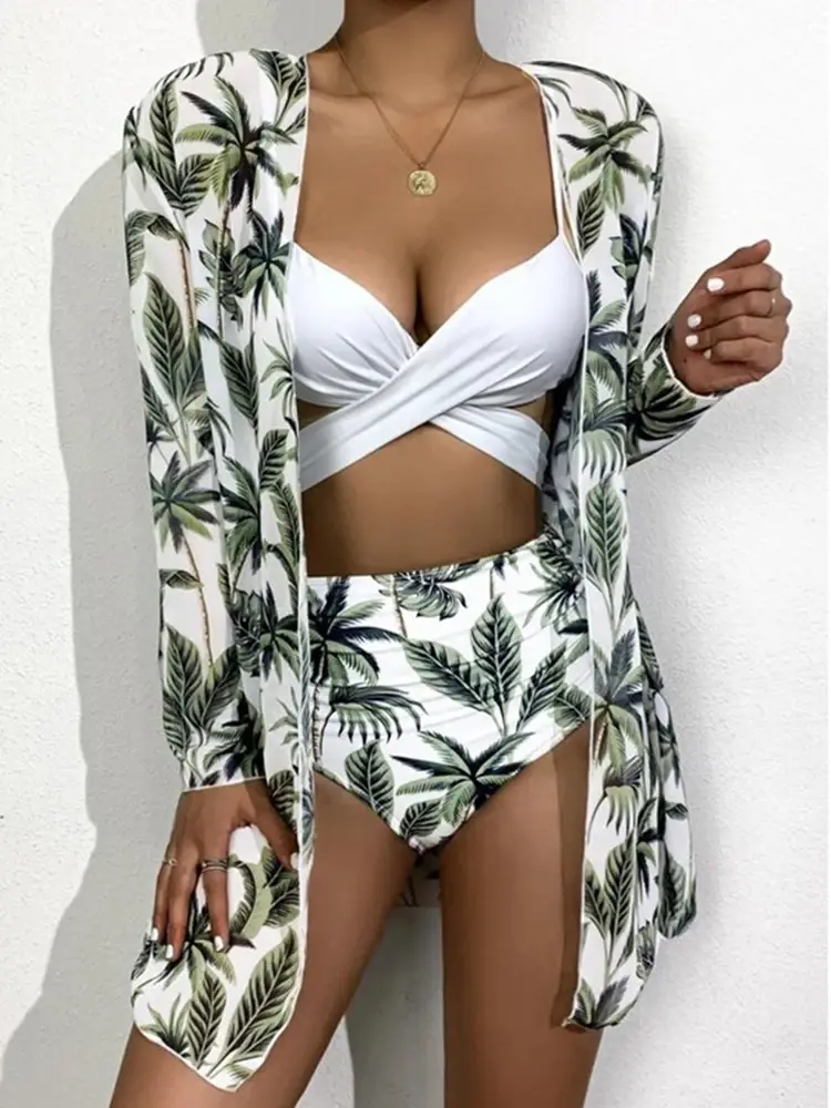 Printed High Waist Bikini Set with Cover Up Swimsuit