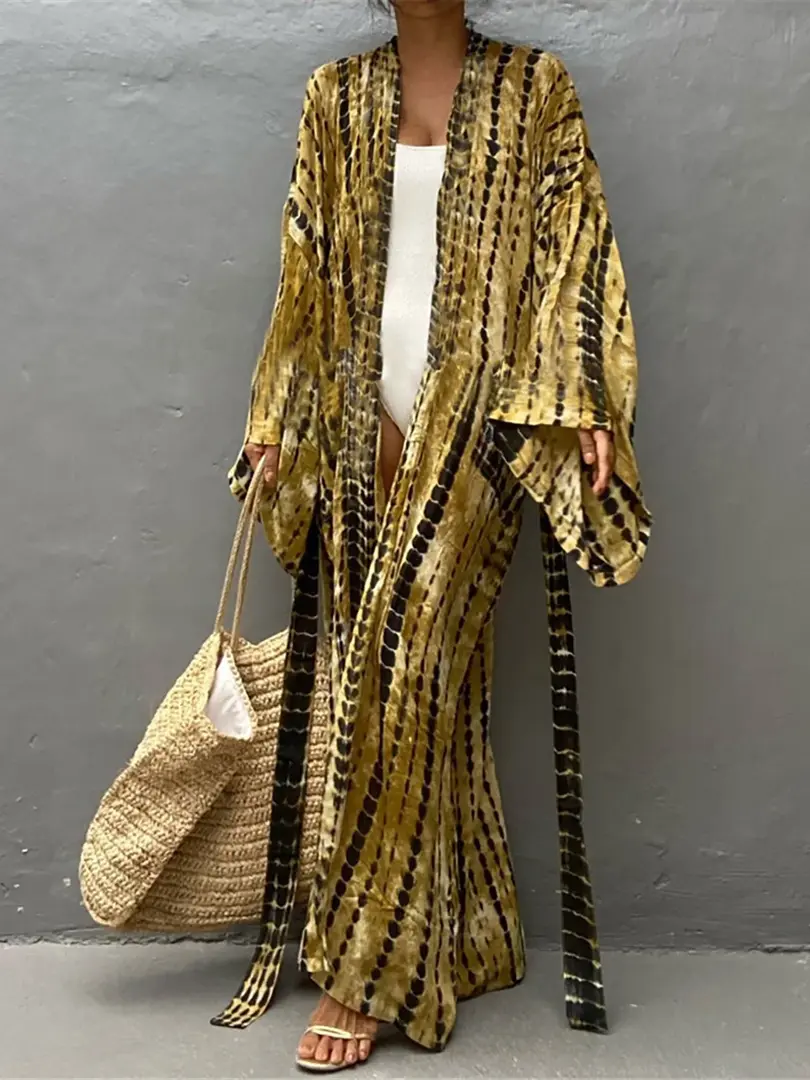 Printed Long Sleeve Tunic Dress Beach Cover Up With Belt