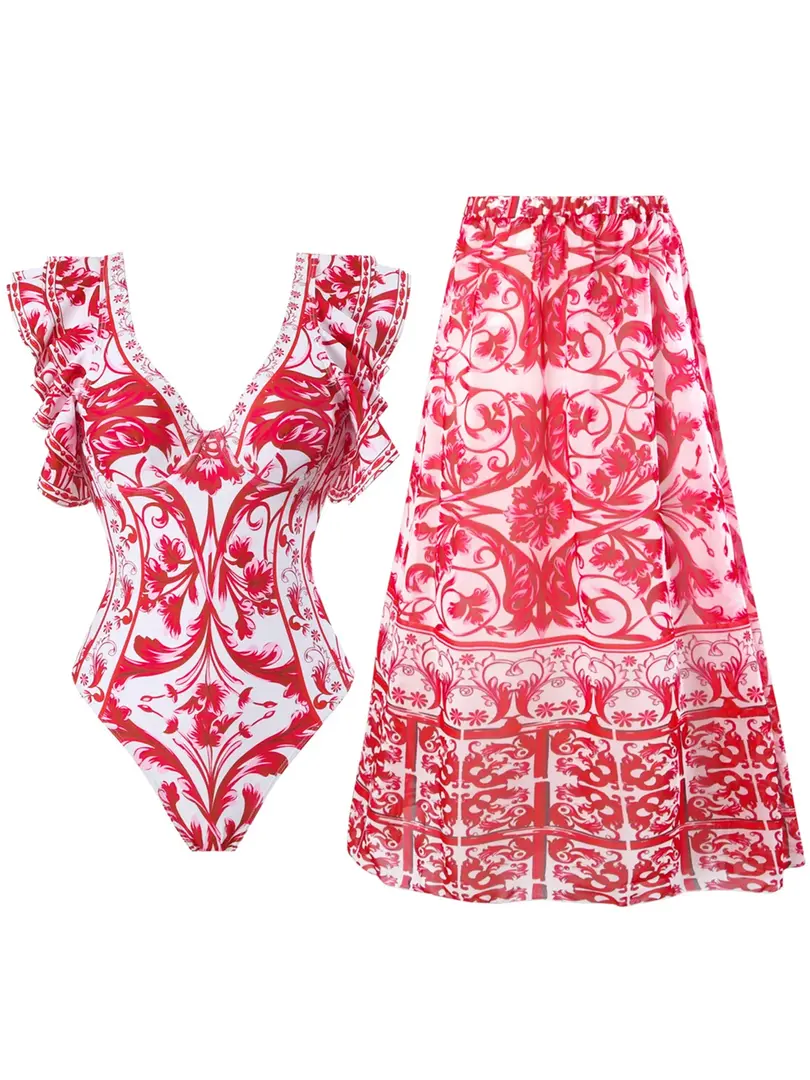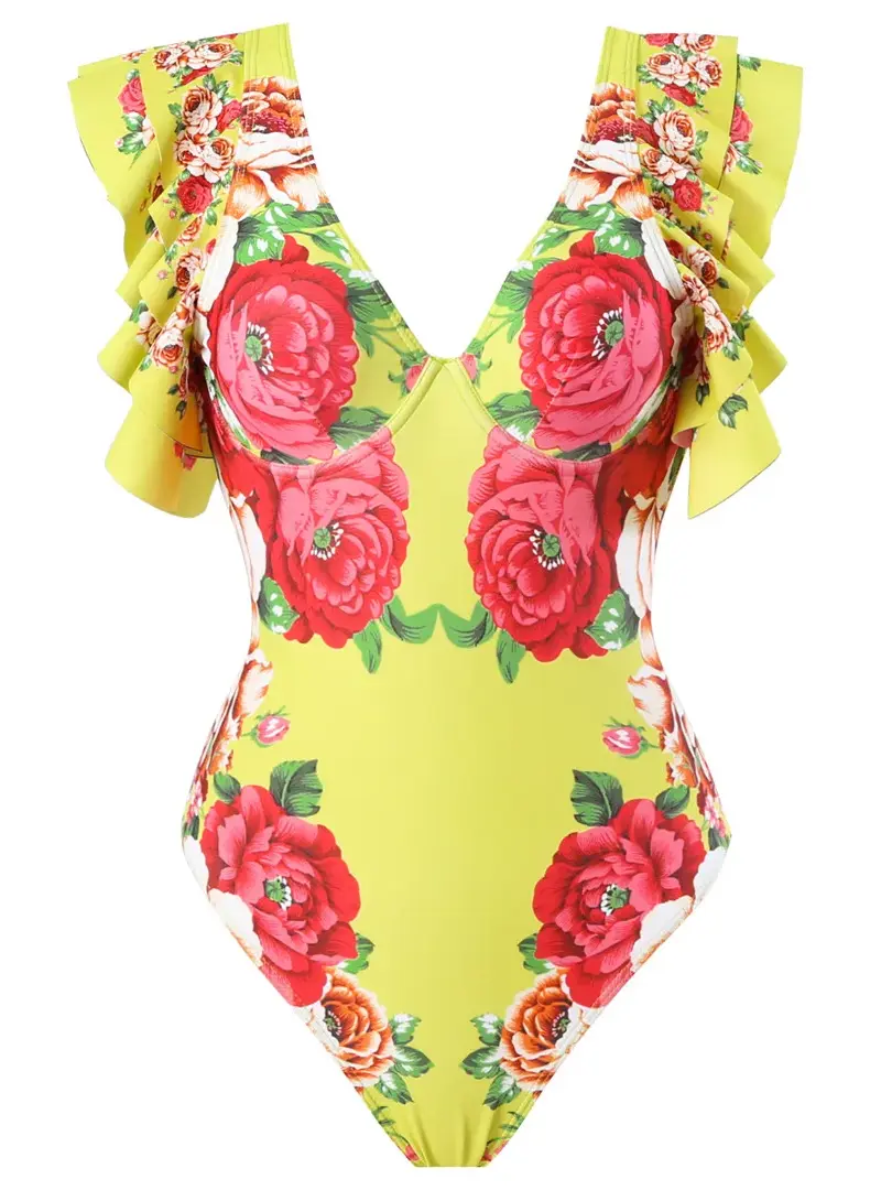 This swimsuit is perfect for a day at the beach or pool. It's made from a comfortable and durable blend of nylon and spandex, and it features a flattering print. The swimsuit is designed to provide support and coverage, and it comes with built-in padding for added comfort. This swimsuit is made from a blend of nylon and spandex. This swimsuit is perfect for swimming, sunbathing, or just relaxing by the pool or beach.