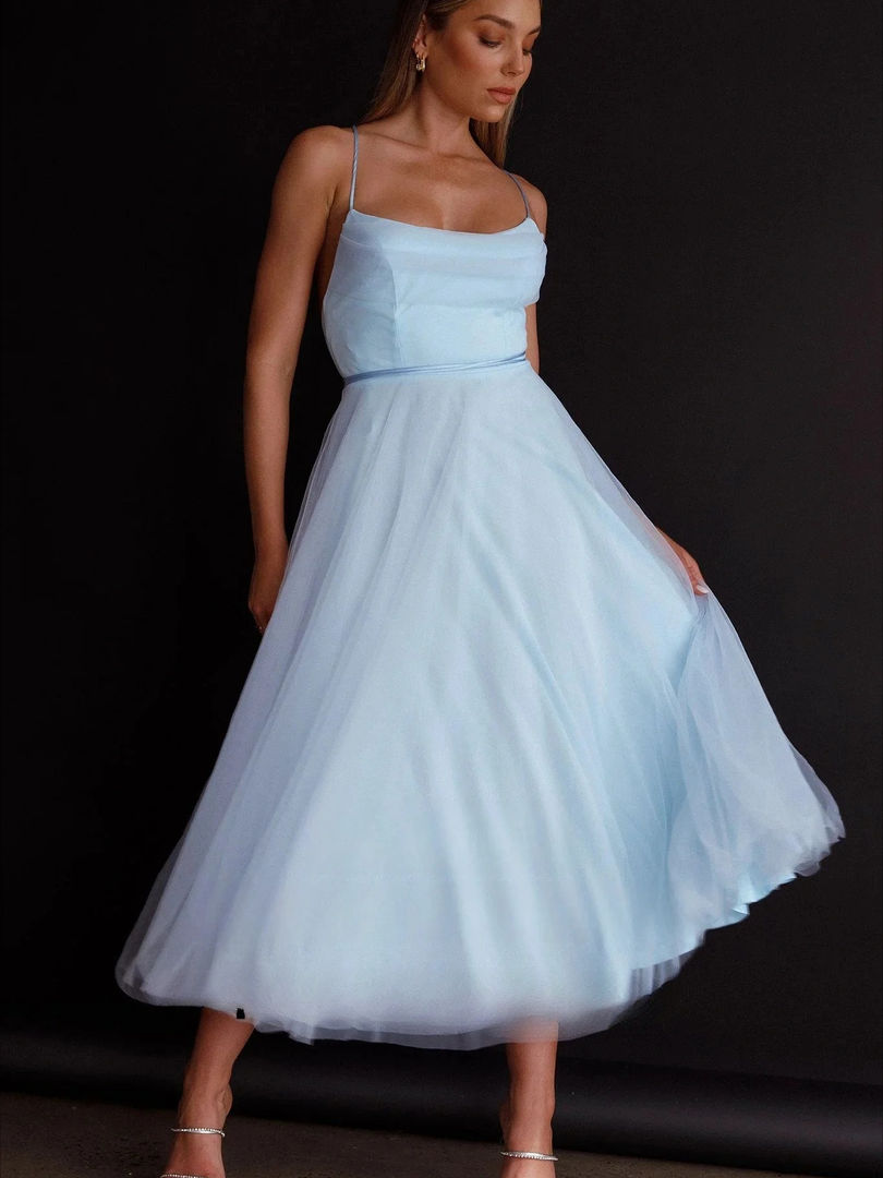 Organza A-Line Strapless Sleeveless Tea-Length Evening Dress Formal Party Cockta