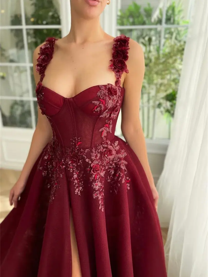 Tulle Evening Dress Ankle-Length Prom Cocktail Ball Gown O-Neck Appliques Lace P
