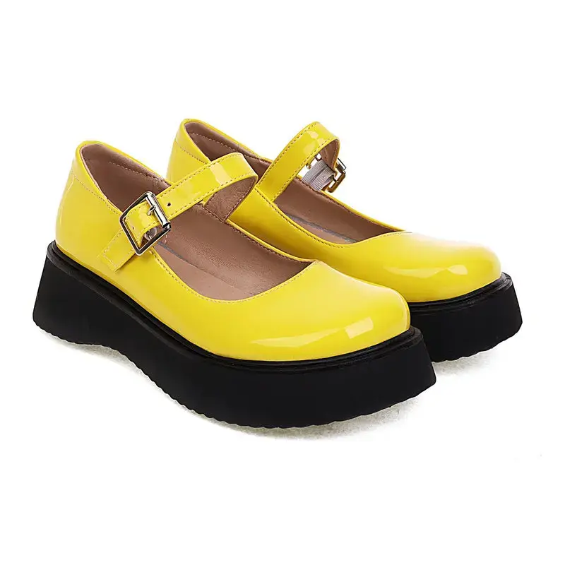 PU Leather School Shoes Foam Light Platform Thick Sole Flats