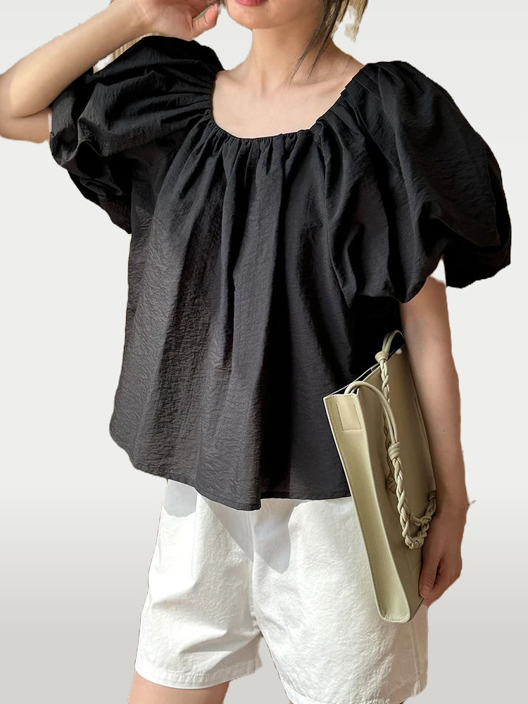 - Add a touch of romantic flair to your warm-weather wardrobe with puff sleeve tops! Made from a breathable broadcloth fabric with a slight stretch for comfort, these tops offer a relaxed fit that flatters any middle-aged figure. The classic O-neck collar and playful puff sleeves create a stylish silhouette perfect for spring and summer. Choose from a sweet pink or a versatile black to add a touch of personality to your look.