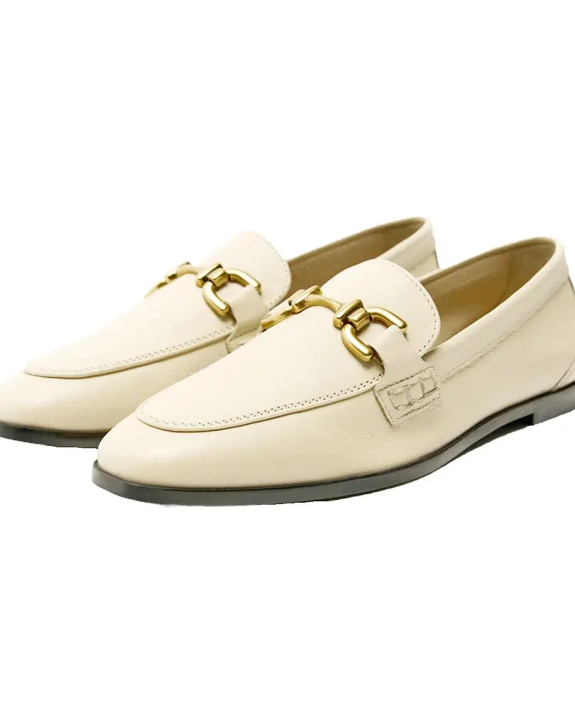 These loafers are crafted from smooth leather, offering a classic round-toe silhouette. They feature a comfortable low square heel and a subtle platform, designed for your spring and autumn ensembles, with a metallic detail for a modern touch.
