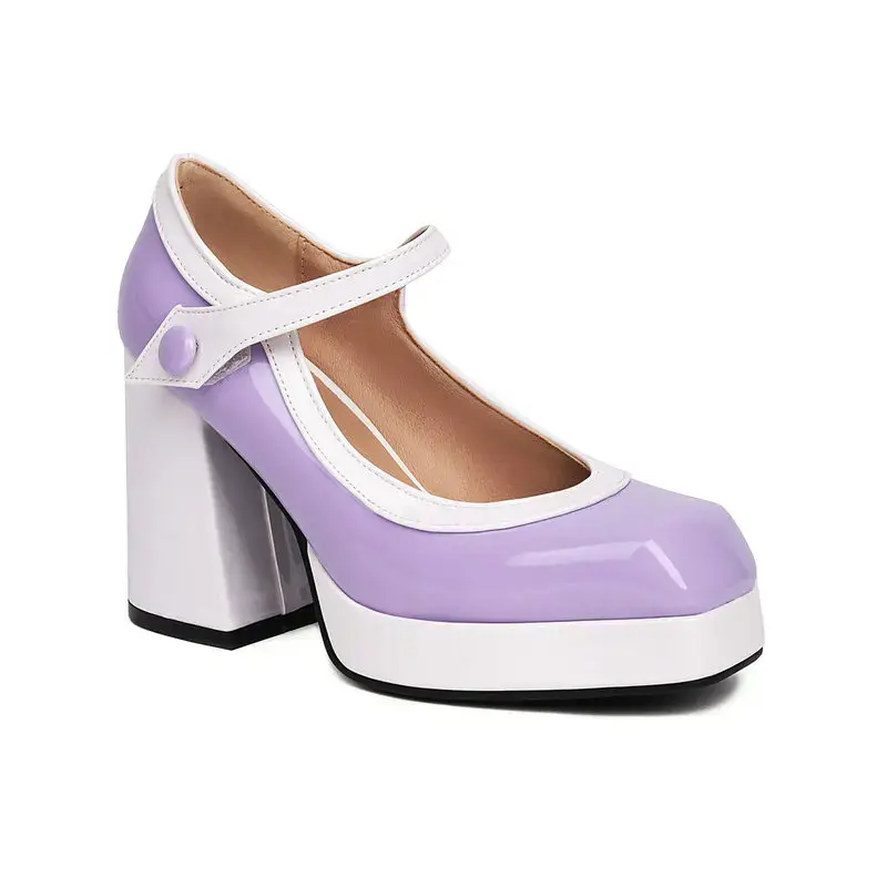 Purple Yellow White Mixed Color Plus Size Square Toe Office Shoes