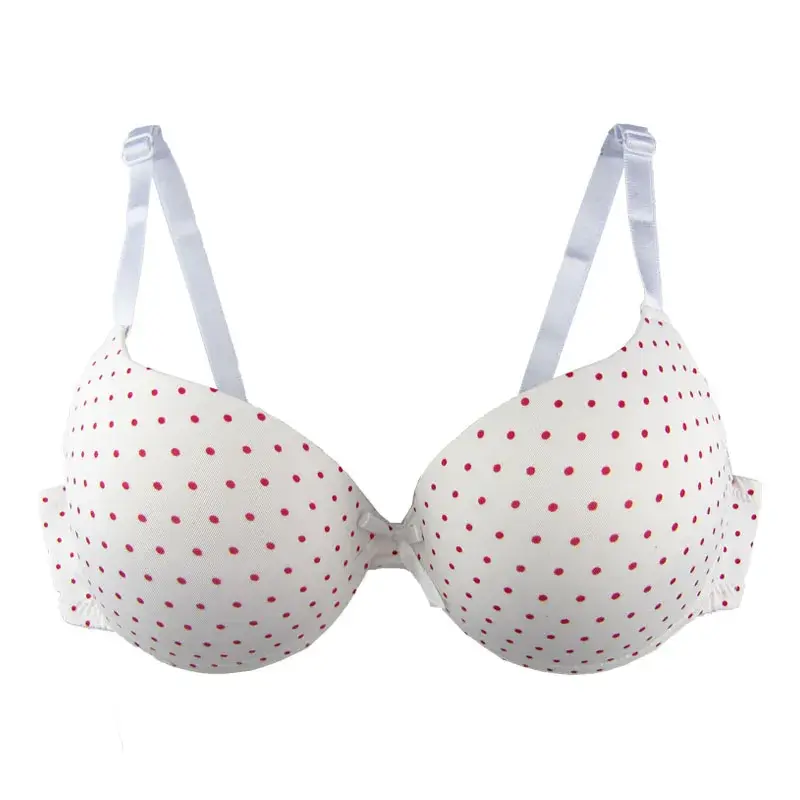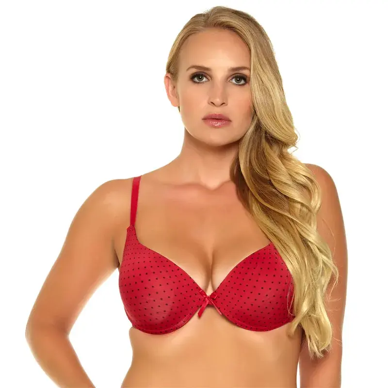 Push Up Bra with Dot Printing, Hook & Eye Closure, 3/4 Cup, Red/White