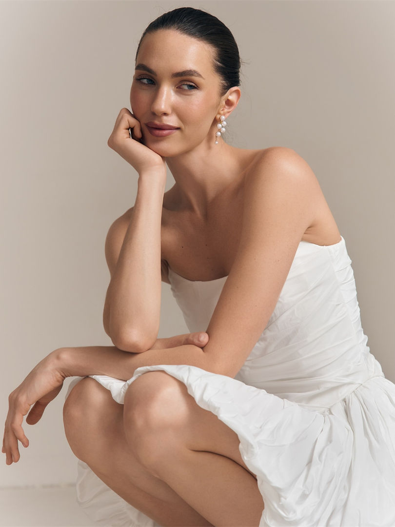 Tags:Mini wedding dress, short taffeta wedding dress, A-line bridal gown, vintage inspired wedding dress, strapless lace up wedding dress, white mini dress for wedding, modern short wedding dress, affordable short wedding dress, casual mini wedding dress, small wedding dress, simple short wedding dress, knee length wedding dress, short wedding reception dress, short wedding dress with lace up back.