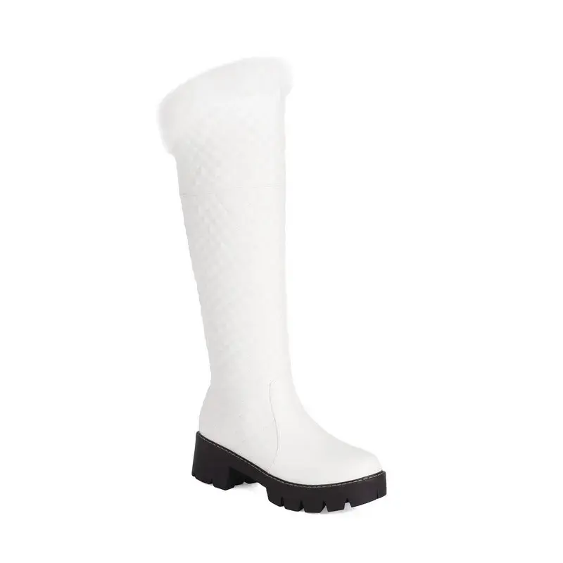 These stylish snow boots are designed to keep your feet warm and dry all winter long. The knee-high silhouette and platform sole create a trendy and practical look, perfect for navigating snowy streets in style.