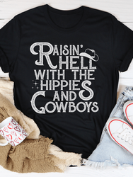Raisin Hell With The Hippies And Cowboys Tee US Made 100% Cotton Digital Print