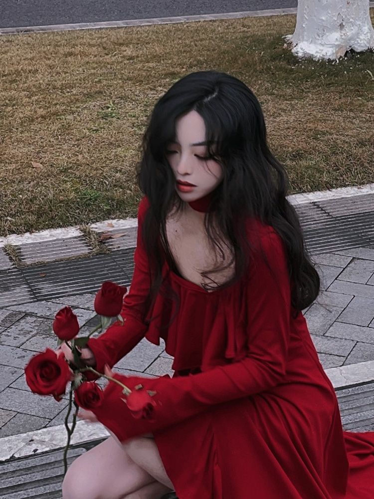 Tags:red asymmetrical dress, elegant party dress women, ruffle design dress, korean slim dress, fairy dress women, mid-calf ruffle dress, autumn party dress, long sleeve asymmetrical dress, empire waist party dress, red polyester dress women, slim fit party dress, women's special occasion dress, red dress for fall, asymmetrical midi dress with sleeves.