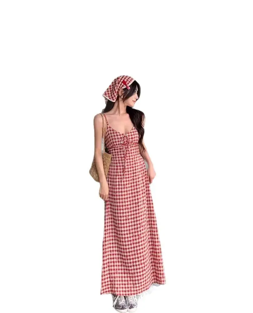 Tags:red plaid sleeveless dress, backless summer maxi dress, slim fit plaid dress women, ankle length plaid dress, polo neck summer dress, empire waist plaid dress, casual plaid summer dress, red and black plaid dress women, off shoulder plaid maxi dress, French country style plaid dress, summer sleeveless plaid dress, women's plaid sundress, red plaid dress for picnic, lightweight plaid summer dress.