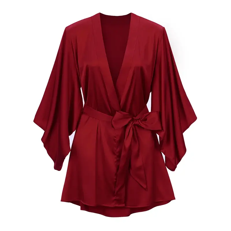 Red Silk Kimono Robe Nightgown Sexy Sleepwear Bridal Lingerie