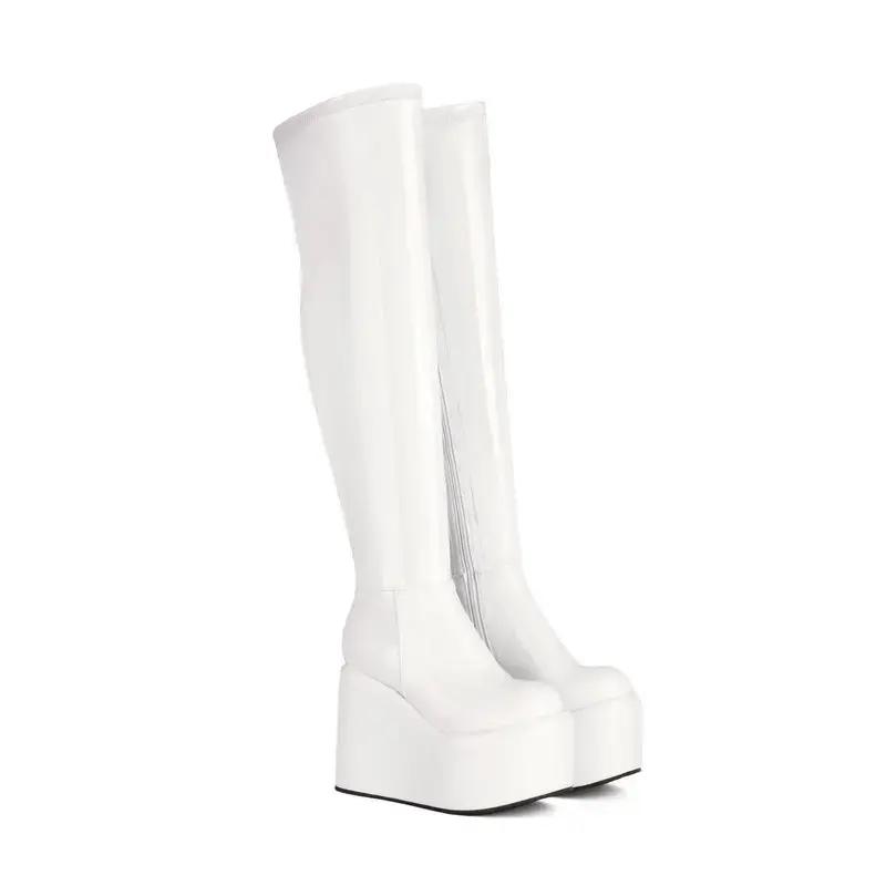 Step out in style and comfort with these chic stretch boots. Designed with a flattering over-the-knee silhouette and a trendy platform, these boots are perfect for adding a touch of edgy sophistication to any look.