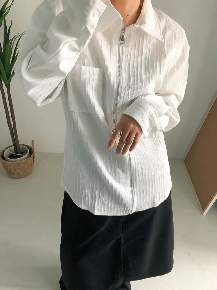 This comfortable jersey knit shirt offers a casual twist on a classic button-up. Made from a midweight cotton-polyester blend, it's breathable and drapes softly for a flattering silhouette. The relaxed fit allows for easy layering, while the zip-front closure adds a modern touch. Available in a crisp white color, this versatile shirt is a great addition to any wardrobe.