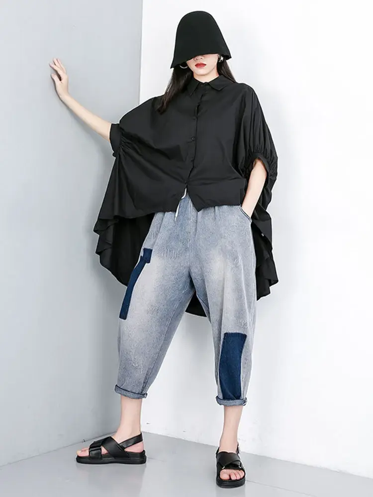 This relaxed-fit shirt offers effortless style in classic black or white. Made from a breathable cotton-polyester blend, it features a comfortable turn-down collar and short sleeves for warm weather wear. The non-stretch fabric drapes beautifully for a flattering silhouette.